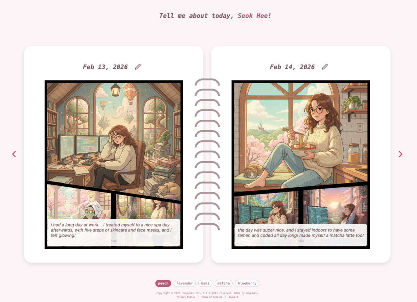 a web-based journaling experience that brings your daily reflections to life through comic-style illustrations.